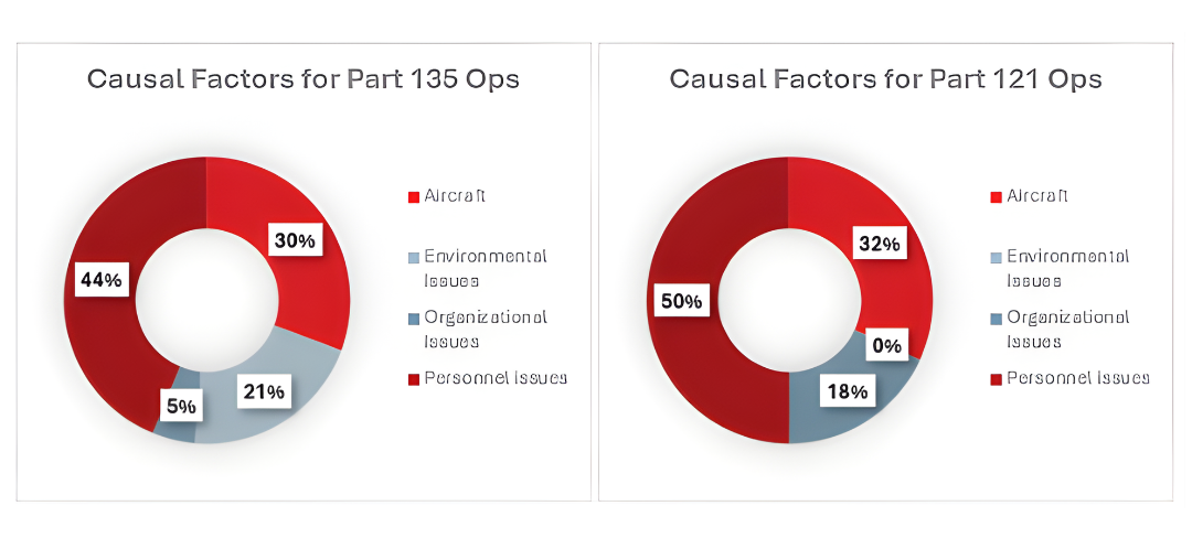 Below is a breakdown of causal factors for both Part 135 and Part 121 Operations.